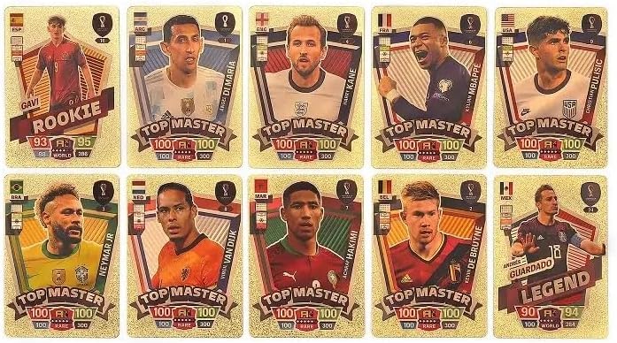 Generic - مجموعة بطاقات ذهبية بتصميم نجوم كرة القدم العالمية، بطاقات في ماكس جي اكس الذهبية والغموض الشائع، 10 قطع، كرة القدم