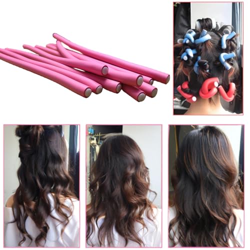 MEYIART - 10 قطع من بكرات تمويج الشعر المرنة، بكرات من الفوم الناعم بدون حرارة، أداة تجعيد الشعر للنساء ذوات الشعر الطويل والقصير (وردي، 0.8×24 سم)
