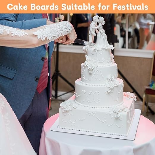 - 10pcs White Cardboard Cake Tray Set, Non-Stick Square Dessert Plates for Christmas Wedding Birthday Anniversary Meeting Round 30*30 Cake Serving