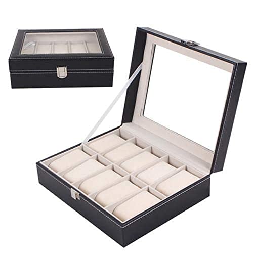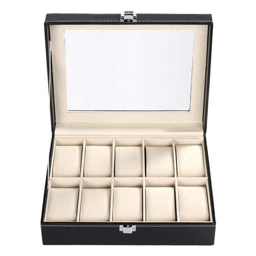 Other - 10 Slots Grid PU Leather Watch Boxes Casket Display Box Jewelry Storage Organizer Case locked Watch With Glass Top Winder