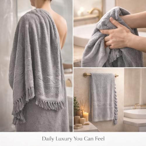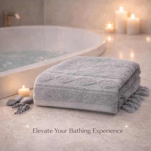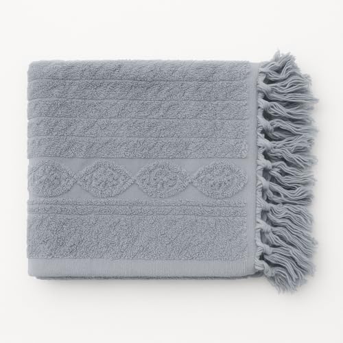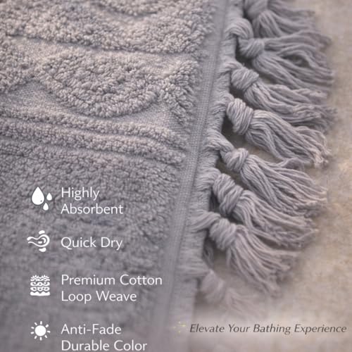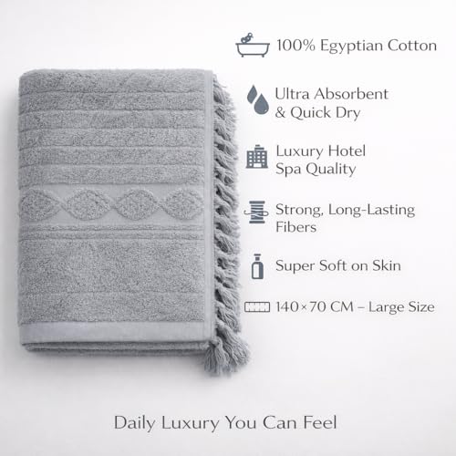 Generic - 100% Egyptian Cotton Luxury Bath Towel – Ultra Soft, Highly Absorbent, Premium Hotel Spa Quality, Durable & Quick Dry, Elegant Textured Design with Tassels – Made in Egypt 140 * 70 (Grey)