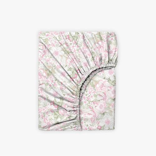 Nadra Collection - 100% Egyptian Cotton Sateen Fitted Sheet Set Housewife Billowcases Printed (Queen, Fiori Rose)