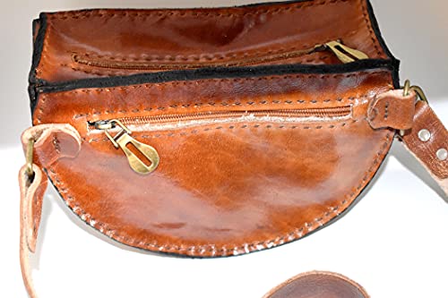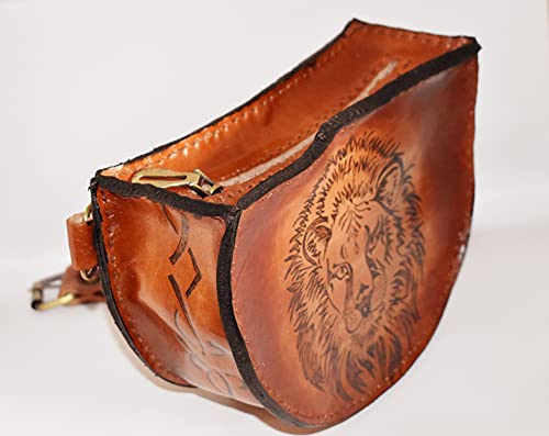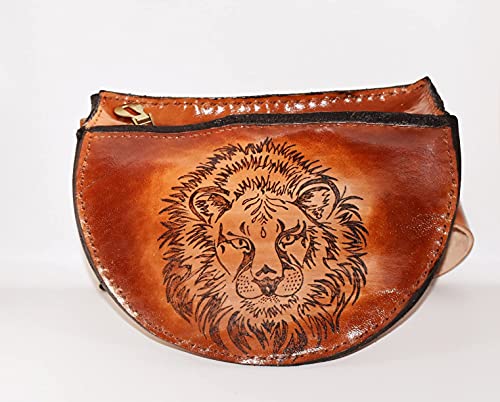 Generic - 100% Genuine Leather Handmed 2 Pocket Lion Burning Leather Shoulder Bag