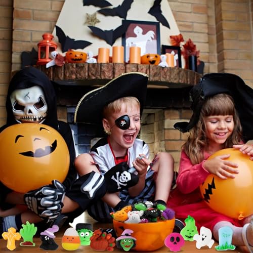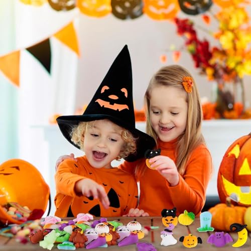 - هدية الهالوين - 100 قطعة من ألعاب الهالوين الإسفنجية مثالية للأطفال والبنات، قم بتبادل الهدية الفريدة مع أصدقائك أو زملائك في الفصل للتعبير عن حبك، كهدايا للهالوين، هدايا عيد الميلاد، أكياس هدايا الهالوين، هدايا الحفلات للأطفال.