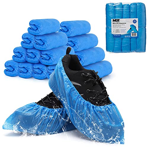 MALPURWALA مالبوروالا - 100 pcs pack of MGT Shoe Covers Disposable Non Slip for Indoors & Outdoors, Recyclable, Waterproof, Durable Shoe Protectors, One Size Fits Most (50 Pairs Blue High Quality CPE)