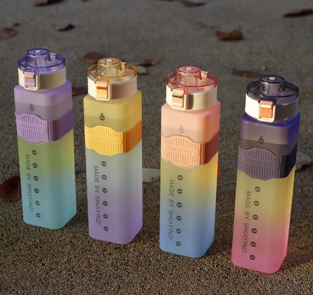 - There are inspirational text and time stamp on the bottle, which is very suitable to help you complete your goals on time and make a daily drinking plan. Adequate water can better achieve fitness goals and efficient indoor and outdoor activities.