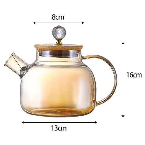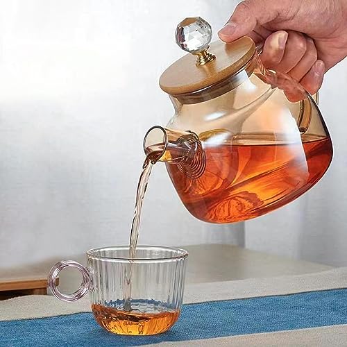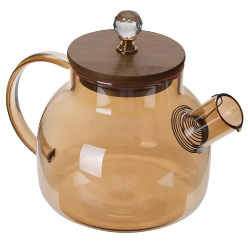 Generic - 1000ml Glass Teapot with Bamboo Wood Lid, Stovetop Safe Borosilicate Teapot, Glass Water Kettle with Stainless Steel Infuser Heat Resistant
