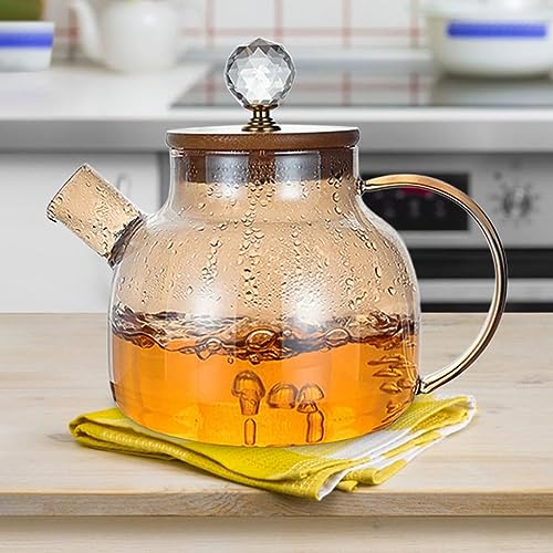- Introducing this 1000ml glass teapot with bamboo lid is the perfect addition to your tea set. Made from high quality borosilicate glass, this teapot is designed to withstand high temperatures, making it safe for the stove. The elegant bamboo lid adds a touch of sophistication to your tea experience.