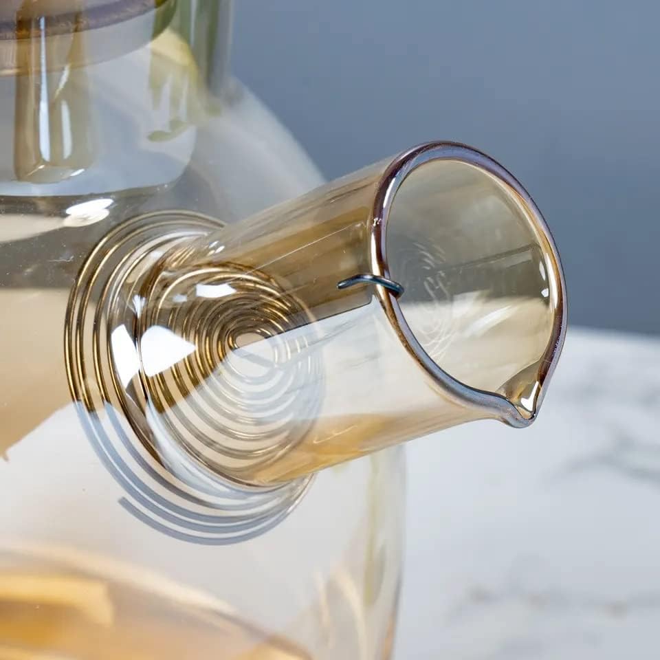 - This teapot is not only functional, but also makes a stylish addition to any kitchen or dining room. The elegant design and clear glass makes it a beautiful centerpiece, whether you're serving tea to guests or simply enjoying a cup on its own. The bamboo lid adds an organic finish, complementing any décor.