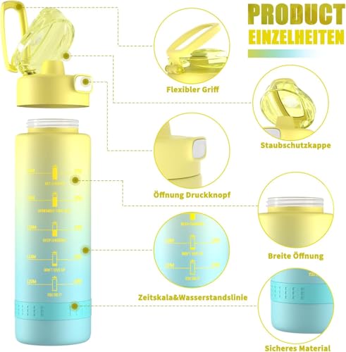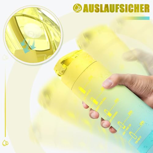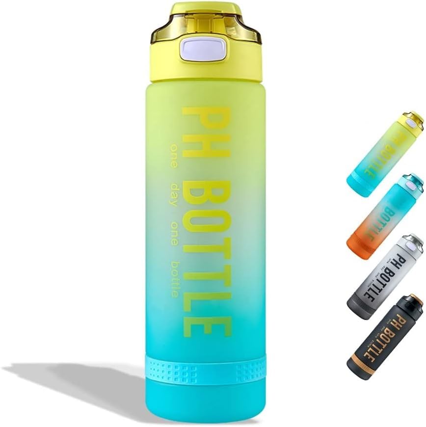 Generic - 1000ml Plastic Water Bottles with Motivational Time Marker Reusable Water Bottles for Gym Workout Men Women Kids School (PH-YELLOW)