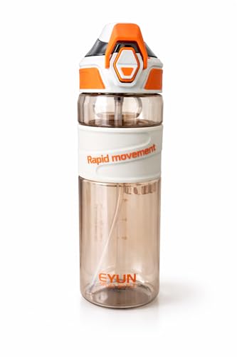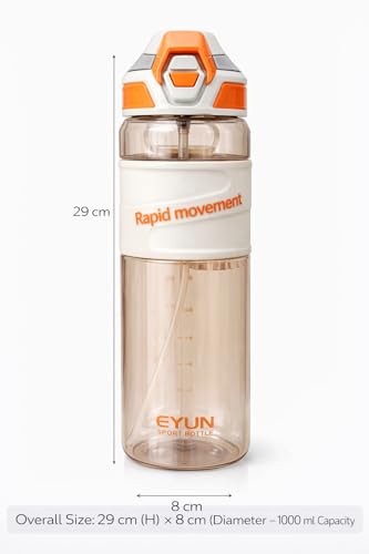 Generic - زجاجة مياه رياضية سعة 1000 مل مع مقبض حمل وقشة، غطاء قلاب بقفل امان، زجاجة شرب بلاستيكية مانعة للتسرب وخالية من BPA لصالة الالعاب الرياضية والاماكن الخارجية (بيج)