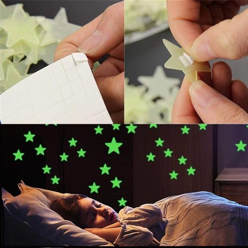 Mumusuki - 100Pcs 3D Wall Glow in The Dark Star Stickers, Glowing Stars for Ceiling, Stars Wall Stickers for Kids Girls Boys Room Bedroom Decoration