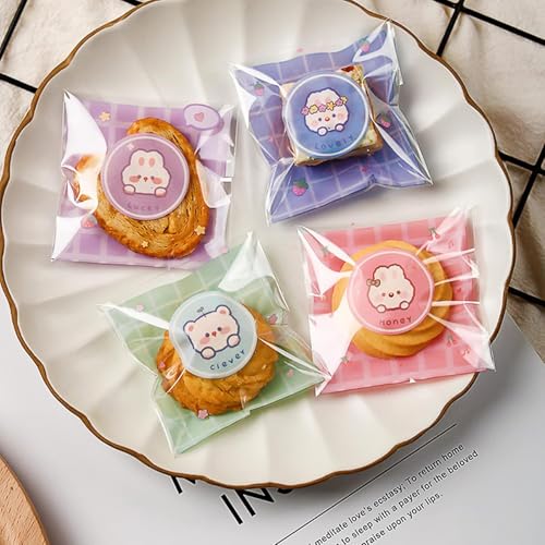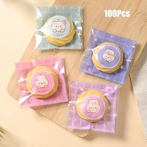 Generic - أكياس بلاستيك شفافة ذاتية اللصق مناسبة لتقديم البسكويت والحلوى والشوكولاتة والمخبوزات، شنطة سيلوفان لطيفة للحلوى، كيس تقديم لأي مناسبة 100 قطعة، 10 × 10 سم