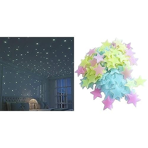 Generic - مجموعة ملصقات جدارية بلاستيكية ثلاثية الأبعاد تتوهج في الظلام بإضاءة فلورسنت لغرفة الأطفال-أزرق-100 قطعة + نجوم مضيئة نوم الأطفال وغرفة المعيشة 100 ألوان متعددة