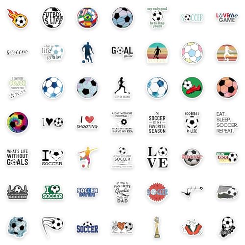 Qiexuxing - 100PCS Soccer Stickers, Soccer Party Favors for Kids, Sports Stickers for Boys and Girls, Waterproof Stickers for Water Bottles, Soccer Gifts for Boys 8-12