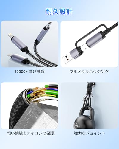 - 【IMPROVED DURABILITY】 Charging cable Multi uses higher material aluminum alloy for each charging port and high density nylon braided on the outside of the cable, so the overall durability is more than 5 times more than ordinary charging cables. This rapid charging cable can withstand 20,000 times bend test, still as perfect as new