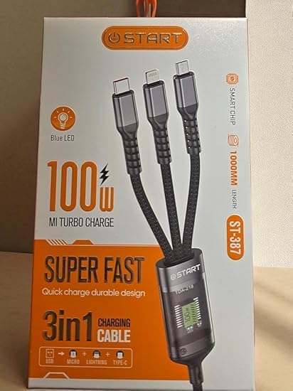 - Original START ST-387 Certified Lightn/Micro / C 100W Multi Speed Charging Cable Nylon Charging Data Transfer Cable with LED Indicator, Multi Charger Adapter Cable 12 Months Warranty