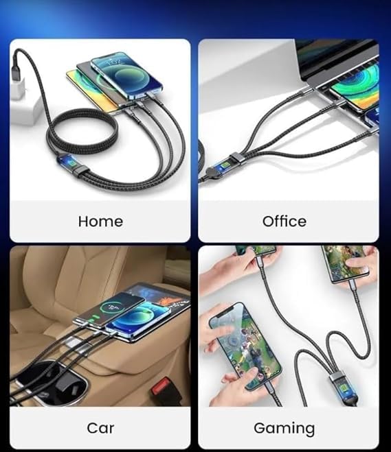 Generic - 100W Multi 3 in 1 Type Lightn/Micro/Type-C Original Certified START ST-387 Fast Charging Cable Nylon Charging and Data Transfer Cable with LED Indicator, Multi Charger Adapter Cable 12 Months Warranty