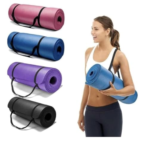 Generic - 10mm Thick Non-Slip Yoga Mat with Attached Strap Ideal for High-Intensity Interval Workouts, Pilates, Yoga and Many Other Home Workouts (Blue)