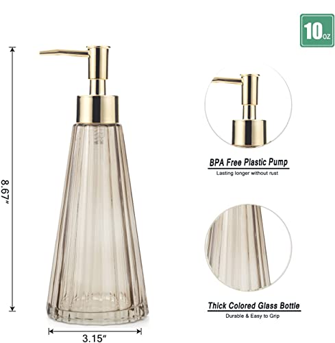 IVAILEX - 10oz/300ml Hand Soap Dispenser Bathroom, Kitchen Soap Dispenser, Glass Soap Dispenser with Silver Rust Proof Pump, Liquid Soap Dispenser with Elegant and Beautiful Color (Brown)