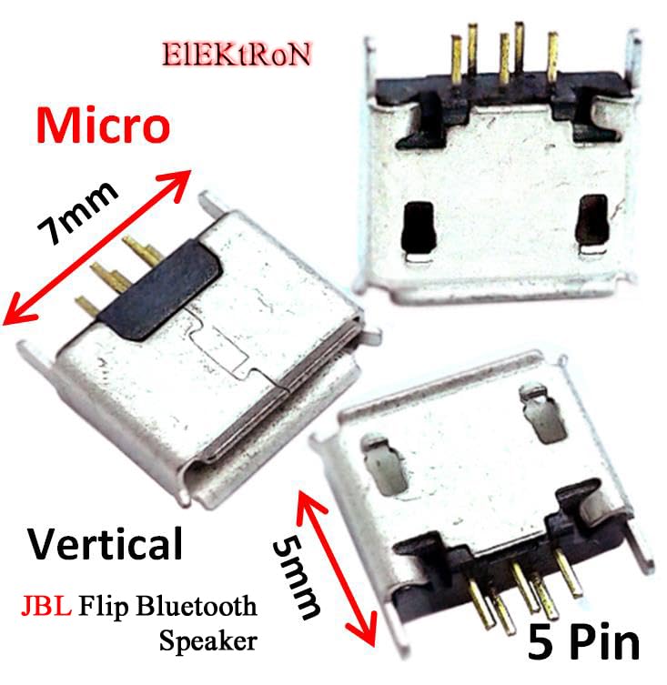 Generic - 10Pcs Female Port 5P SMD SMT Micro USB 2.0 Charging Socket Jack B Type 5 Pin Mini Connector Flip Bluetooth Speaker DIP 5P Socket Vertical 180 degrees Repair Replacement