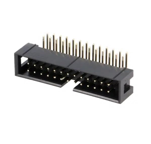 - رأس توصيل ذكر من نوع IDC26 مستقطب، يُستخدم مع مقابس IDC المستقطبة، الدبابيس قياسية الشكل بمقاس 0.1612 سم مربع موزعة بشكل شبكة بمسافات 0.254 × 0.254 سم. يتحمل تيارًا يصل إلى 1 أمبير. مثالي لتوصيلات ناقل البيانات (البورتات) وشاشات LCD.
