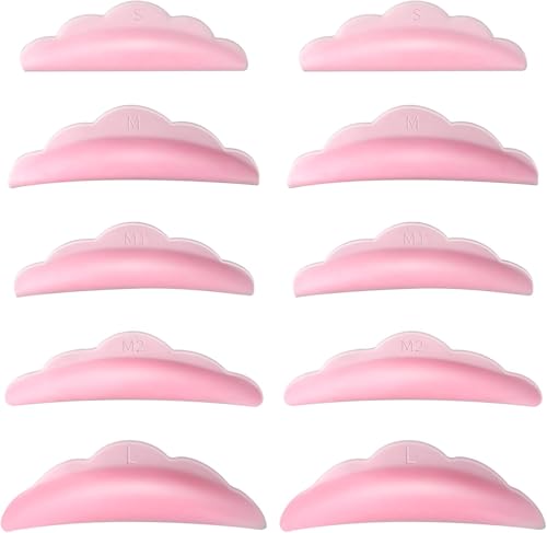 Generic - 10Pcs Lash Lift Rods, Silicone Pads Eyelash Shields for Perm Curls Kits, Silicone Eyelash Pads for Eyelashes Makeup Tool,Reusable Lash Lifting Pads Pink Eyelash Curler Supplies, 5 Sizes S/M/M1/M2/L
