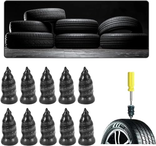 - 【Tubeless Tyre Repair Rubber Nails Kit】- 10 x Tire repair rubber nail+1 x Screwdriver,note that the inside of the rubber nail is a metal screw, and the outside is wrapped with a rubber coat, so as to avoid the friction loss.