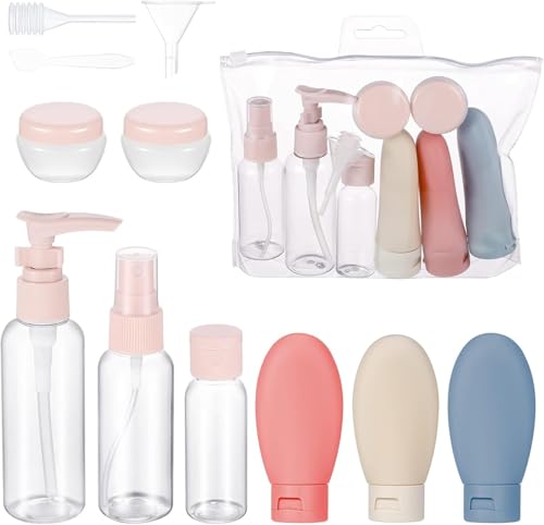 Generic - 11 Piece Plastic Silicone Travel Bottle Set | Spray Bottles, Spencer & Mini Cream Bottles with Clear Case | Suitable for Shampoo, Lotions, and Creams | Perfect for Travel, Gym, School