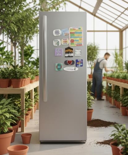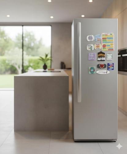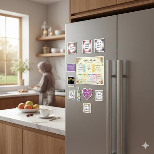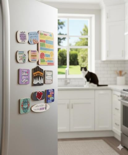 - 11-piece fridge magnets featuring Quranic shapes and adhkar