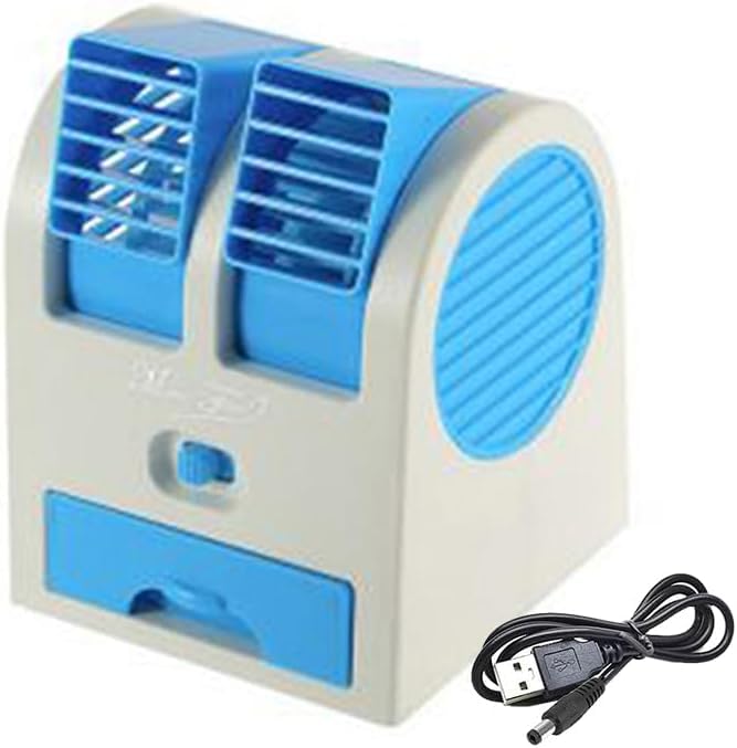 - ✅ MULTI-FUNCTIONAL: Humanized Design, Access to Detail Dual air outlet design, bring you more wind. Mini table air cooler It can stay away from dryness and moisturizes skin all day long.