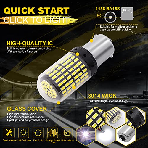 - 💡Application: This 1156 Led Bulb White Only used for front/rear Turn Signal Lights,Brake Lights,Tail Lights,Stop Lights,Reverse Lights etc.NO needed a load resistor for most vehicle,maybe some vehicles require resistor to prevent hyper-flashing.NOTE: High-power bulbs cannot be used for daytime running lights!