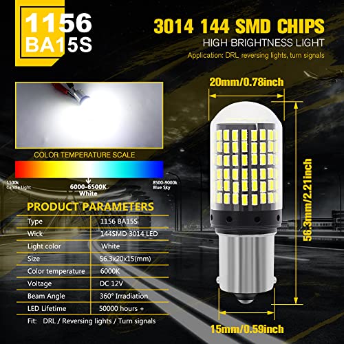 - 💡Fitment: 1156 white led light bulbs replacement for 1003 1073 1095 7506 1141 1156 1156A 1195 12088 1295 1295NA 199 2396 3497 631 5 007 5 008 93 97 97A 97NA P21W etc.
