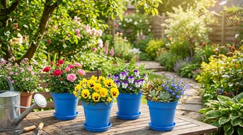 - 1)Set of 4 Practical Home Farming & Decor Bowls Set of 4 Plantation Pans suitable for decorative plants, flowers, herbs and seedlings, coordinate your balcony, garden, shelves and entrances, suitable for home cultivation lovers and preparing a stylish plant corner indoors or out