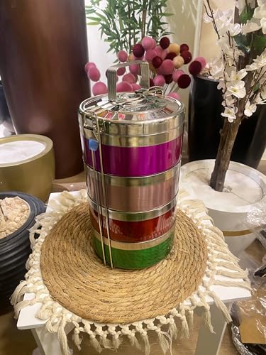- عمود حفظ الطعام الاستيل بيحفظ الأكل سخن أو بارد لحد 12 ساعة كاملة عملي جدًا ف الشغل ، الجامعة ، السفر أو الرحلات القطعة 18 سم يعني بياخد كمية محترمة مكون من 4 قطع