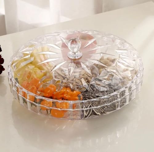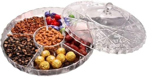 Generic - 12.6 Inch Acrylic Serving Tray with Lid, 6 Compartments Serving Tray for Candy, Nuts, Fruits, Appetizers, Meat, and More Mixed - Multicolor