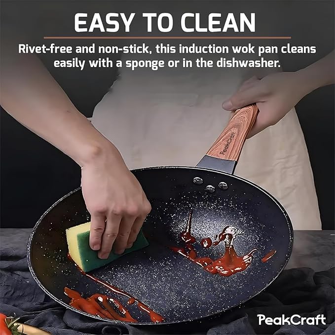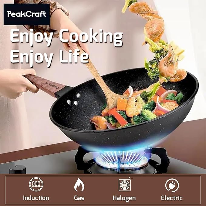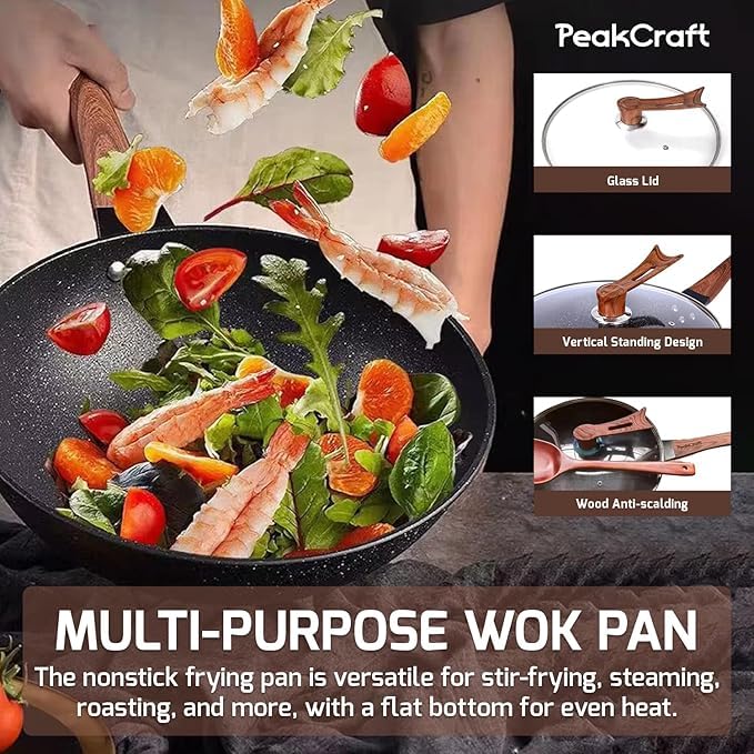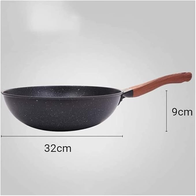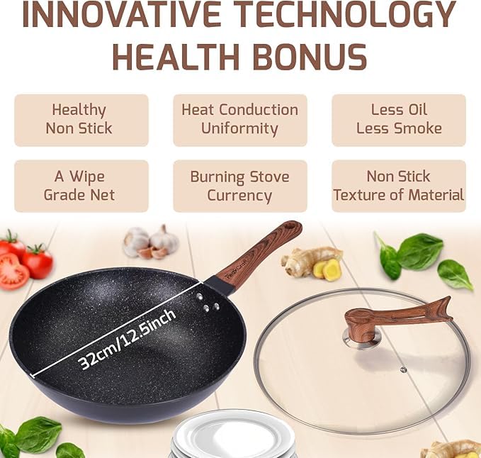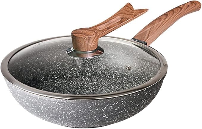 Generic - 12.6-inch non-stick wok with lid, granite-coated frying pan, flat-bottom wok for induction, gas, and electric cooktops, carbon steel style cookware