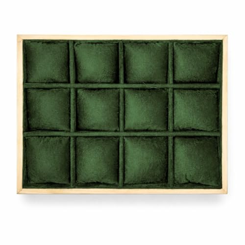 Generic - صندوق تنظيم خشبي بـ 12 حجرة، إطار خشبي طبيعي مع بطانة مخملية، متوفر بألوان تركواز، رمادي، أسود (ذيتى)