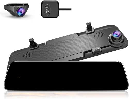 KOXAME - 12 Inch 4K Mirror Dash Cam with Rear View Mirror Camera, Backup Camera, Night Vision, GPS, WiFi, Auto-Loop Recording, Collision Lock, Free 64GB SD Card