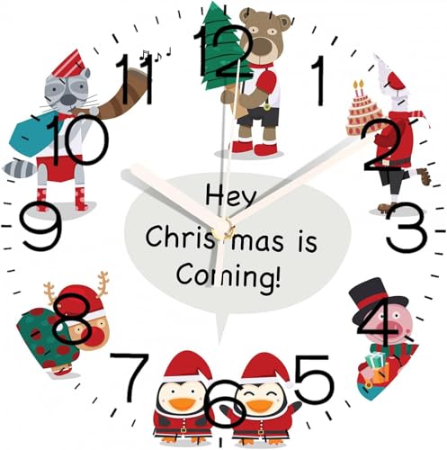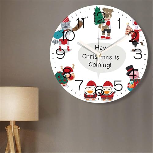 Generic - ساعات حائط دائرية لطيفة مقاس 12 انش، ساعات حائط بتصميم شخصيات كرتونية للكريسماس، ساعة حائط صامتة تعمل بالبطارية، ساعة حائط صامتة للمدرسة ورياض الاطفال وغرفة المعيشة والحمام