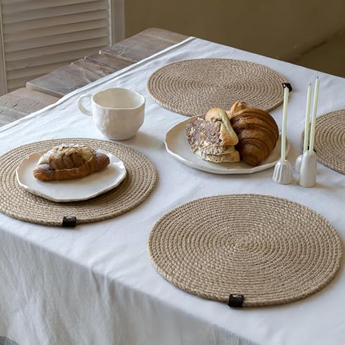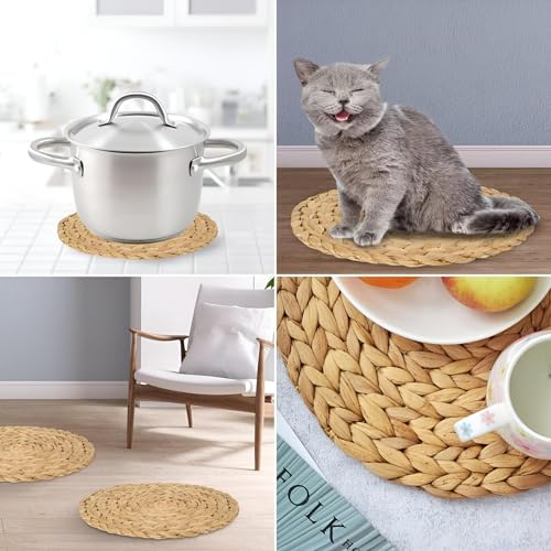 Generic - بساط دائري مقاس 12 بوصة منسوج من الروطان الملتوي المتين، مكتمل بقاعدة من الياقوت المائي الطبيعي لطاولة الطعام الخاصة بك، مما يضمن مقاومة الحرارة والأداء غير القابل للانزلاق (6 كوستر)
