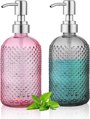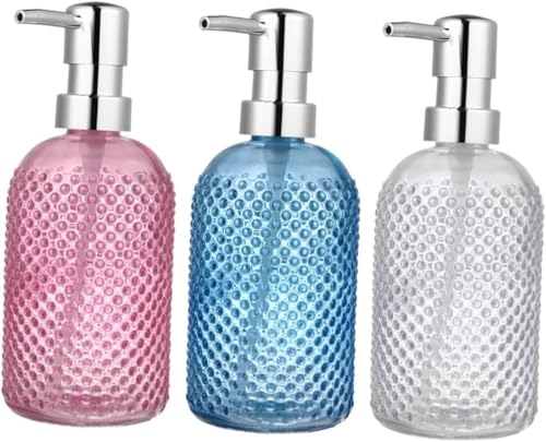 Generic - موزع صابون زجاجي شفاف سعة 12 أونصة قابل لإعادة الملء مع مضخة من الستانلس ستيل المقاوم للصدأ مثالي لصابون اليدين، اللوشن، الزيوت العطرية، للمطبخ والحمام بتصميم أنيق (متعدد الالوان)