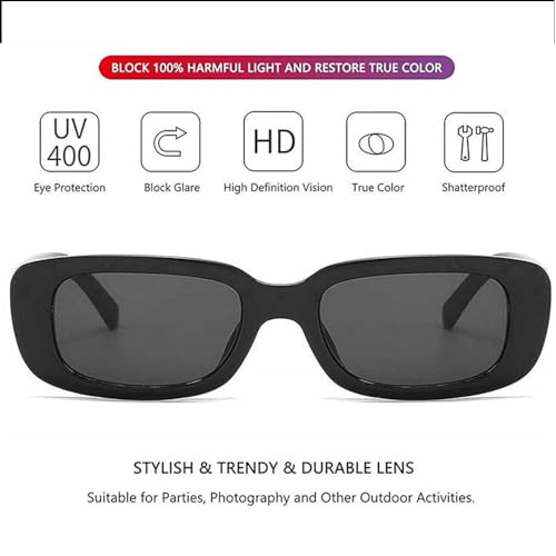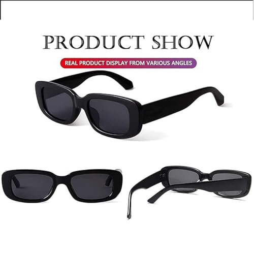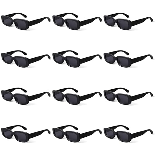 Generic - نظارة شمس للجنسين، عصرية بتصميم مستطيل وإطار مربع عتيق للحماية من الاشعة فوق البنفسجية، لون أسود 12 قطعة