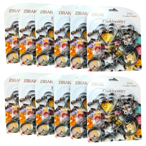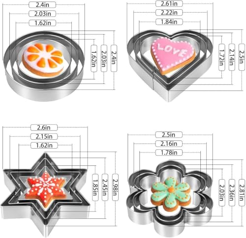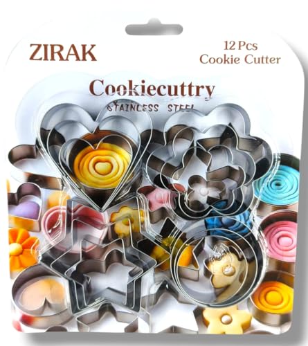 Zirak - 12 Pcs Cookie Cutter Stainless Steel Cookie Cutter with 4 Shape 3 Sizes Heart Round Star and Flower (Set of 12 Pieces)