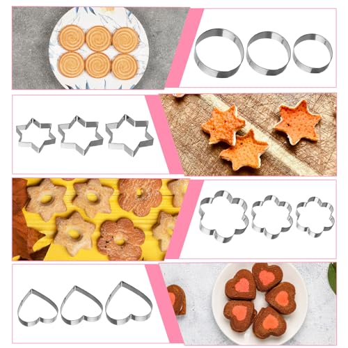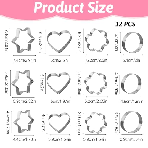 - 【4 أشكال فريدة، 3 مقاسات】تحتوي قطاعة الكوكيز الصغيرة على 12 قطعة، 4 أشكال مختلفة: قلب وزهرة ونجمة سداسية ودائرة. سواء كان تصميمًا رقيقًا أو قصًا أكبر، فإن هذه المجموعة متعددة الاستخدامات يمكن أن تجعل مشروعات الخبز والحرف اليدوية مليئة بالإبداع.