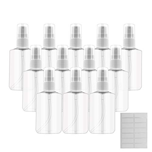 Generic - 12 Pcs Fine Mist Spray Bottles, 2oz / 50ml Small Clear Plastic Travel Bottle Set, Mini Empty Spray Bottle for Baby Shower, Refillable Liquid Containers with stickers, Leak-proof Cap Lid
