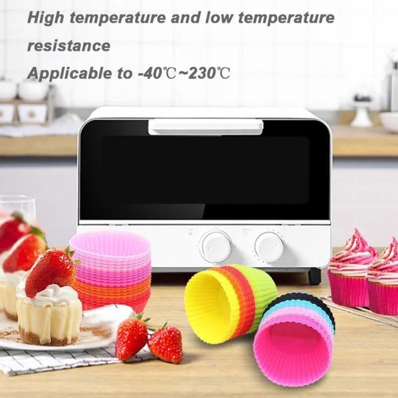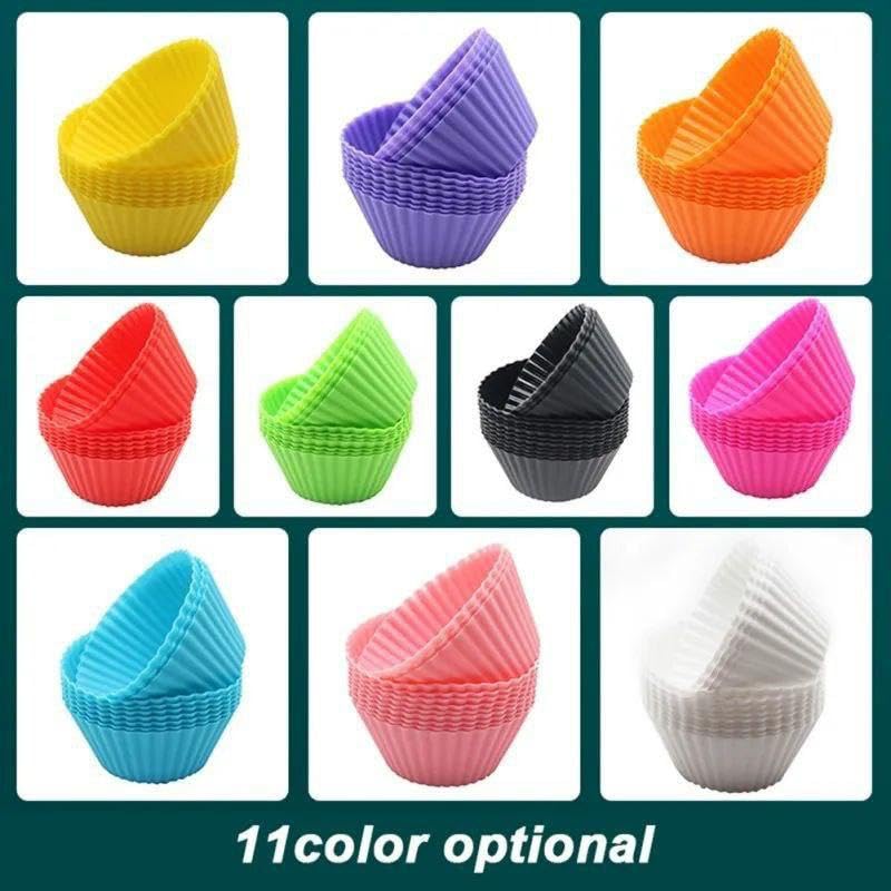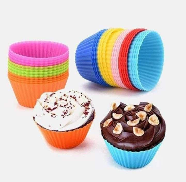 Generic - مجموعة قوالب كيك وكب كيك دائرية من السيليكون متعددة الاغراض للكيك والجيلي والكريمة والكراميل بتصميمات مستديرة 12قطعه