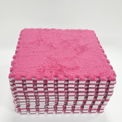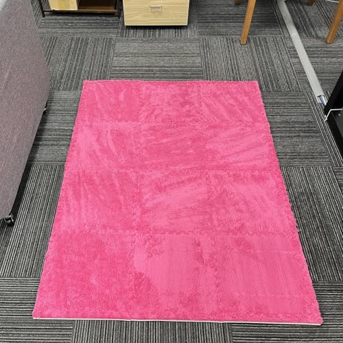 Generic - 12 Piece Interlocking Foam Mat Soft Fluffy Floor Mat Exercise Mat for Kids Room Home Bedroom Floor Protector 30x30cm (Fuchsia)