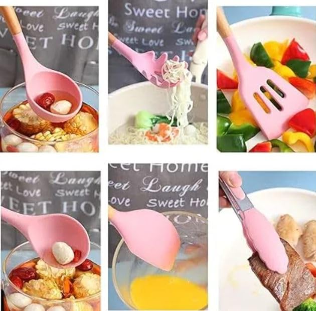 - VERSATILE DESIGN: Pink silicone cooking tools are perfect for use with nonstick cookware, baking, mixing, serving, and general food preparation