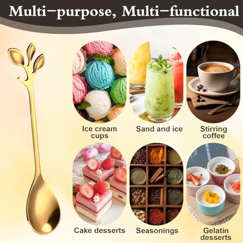 - 【Elegant Design】With a leaf-shaped handle, these spoons bring a touch of sophistication to any table. Perfect for coffee, tea, desserts, and more, they are suitable for both home and office or coffee shops.